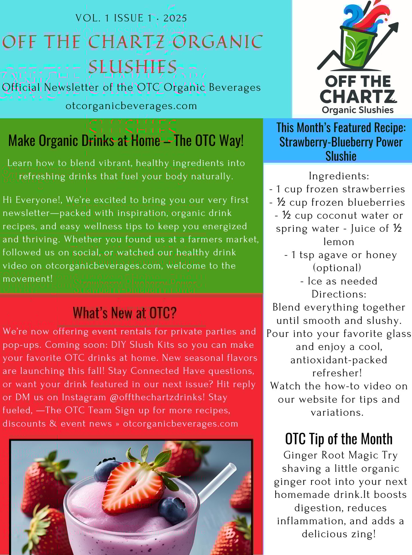 Off the Chartz Organic Slushies, is on a mission to inspire healthier communities by serving ethnically sourced organic beverages and empowering youth and families through education.